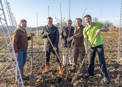 Bezirkstagspräsident Dr. Olaf Heinrich setzte kürzlich mit dem ersten Spatenstich den symbolischen Startpunkt für das Projekt in Deutenkofen. Auf einer Versuchsfläche von rund einem halben Hektar werden fünf widerstandsfähige Apfelsorten gepflanzt. Diese werden mit vier verschiedenen Veredelungsunterlagen kombiniert und in zwei unterschiedlichen Erziehungs- und Bewirtschaftungssystemen angebaut.
