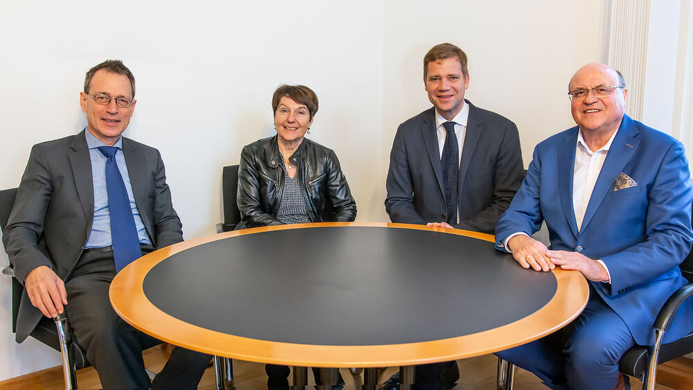 Landshut. Seit 2012 gewährt der Bezirk Niederbayern dem Freundeskreis Hochschule Landshut e. V. einen jährlichen Zuschuss von 2.500 Euro – so auch für 2023. Nun besuchten der Präsident der Hochschule Landshut, Prof. Dr. Fritz Pörnbacher, der Landshuter Stadtrat und 1. Vorsitzende des Fördervereins Ludwig Zellner und die stellvertretende Vorsitzende Ursula Weger, Bezirkstagspräsident Dr. Olaf Heinrich in der Bezirkshauptverwaltung.