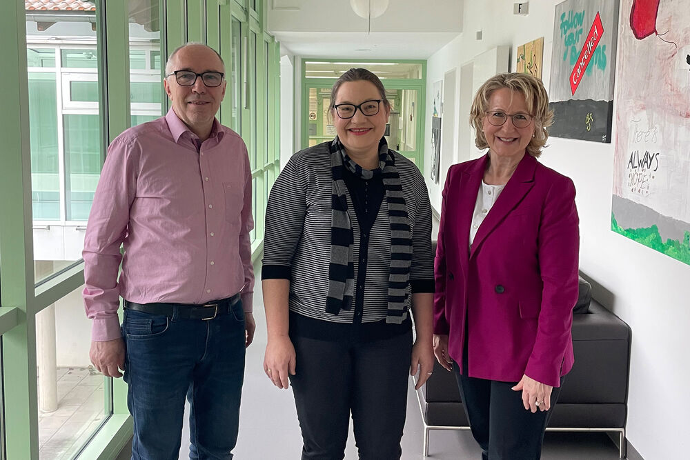 Im Bild: Bezirksrätin Monika Maier (r.) bedankte sich bei der Gesamt-Schwerbehindertenvertretung des Bezirks, Maria Stock, sowie Lorenz Heilmeier vom Personalrat für ihr Engagement.
