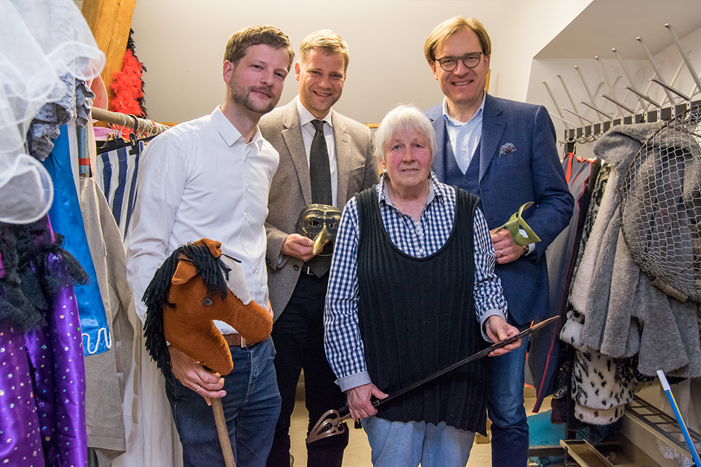 Mit wie viel Leidenschaft die 73-Jährige Kleidung verleiht, wäscht, ankauft und aufbereitet, erzählte sie am Dienstag Bezirkstagspräsident Dr. Olaf Heinrich und Bezirkstagsvizepräsident Dr. Thomas Pröckl, als diese den Kostüm- und Requisitenfundus besichtigten. Beide waren sehr erfreut zu hören, dass die Nachfrage von Amateurtheatergruppen aus ganz Niederbayern hoch sei und weiter wachse. Sie können kostenfrei aus dem reich bestückten Fundus das ausleihen, was sie für ihre Inszenierung brauchen. Auch für Vereine, die beispielsweise historische Umzüge veranstalten, steht die Einrichtung offen.
