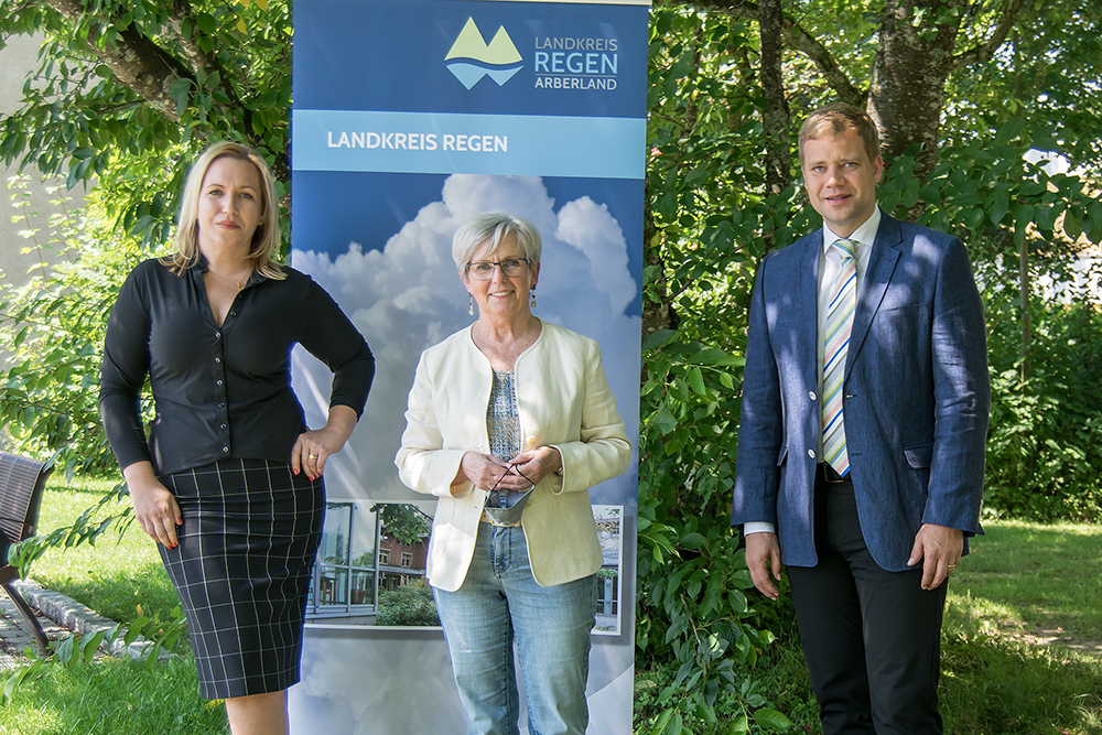 Im Bild von rechts: Bezirkstagspräsident Dr. Olaf Heinrich, Landrätin Rita Röhrl und Beraterin Nicole Bayer