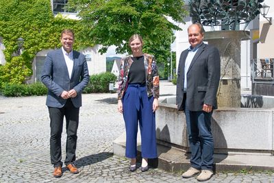 Bildunterschrift: Bezirkstagspräsident Dr. Olaf Heinrich (l.) begrüßte zusammen mit Michael Kreiner, stellvertretendem Leiter des ALE Niederbayern, die neue Genussmanagerin Miriam Dick.