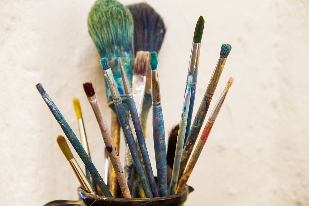 Im Bild: Mit einfachen Pinseln entstehen ganze Bilderwelten. Neben dem handwerklichen Können und der künstlerischen Idee nimmt auch das Werkzeug eines Künstlers eine wichtige Rolle ein.